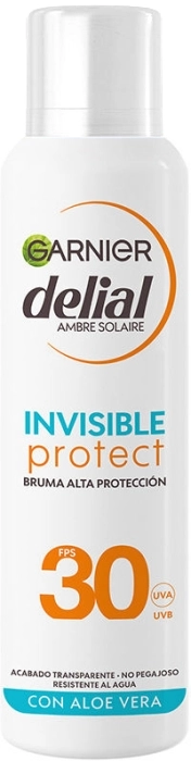 Bruma Invisible Protect de Alta Protección FPS30 de Delial es un protector solar que ofrece alta protección contra los rayos UVA y UVB. Contiene Aloe Vera, que cuida la piel mientras la protege del sol. Su textura ultra-ligera proporciona una sensación refrescante sin dejar una sensación pegajosa. Es resistente al agua, adecuado para actividades al aire libre. El formato en spray permite una aplicación rápida y fácil, asegurando una absorción inmediata en la piel. Se recomienda aplicar antes de la exposición solar y reaplicar con frecuencia, especialmente después de nadar, sudar o secarse con una toalla.