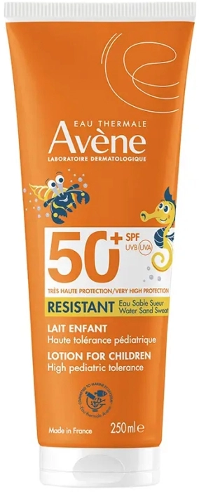 La fórmula efecto barrera antiagresiones de la Leche para niños SPF 50+ hace que sea fluida, ligera y fácil de aplicar. Una fórmula muy resistente al agua con una película protectora reforzada. La Leche para niños SPF 50+ ofrece una protección solar muy alta para la piel sensible de la cara y el cuerpo de los niños.