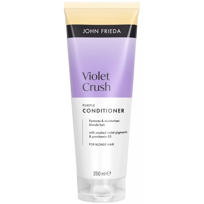 El Acondicionador Violet Crush, con pigmentos violetas triturados, hidrata y nutre los tonos rubios para prevenir los tonos amarillos y anaranjados entre las visitas al salón.