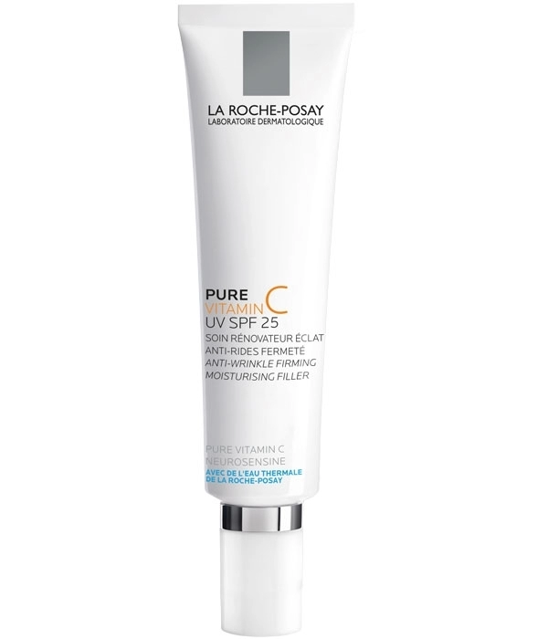 El Tratamiento Rellenador Anti-edad SPF25 Pure Vitamin C UV de La Roche Posay corrige incluso las arrugas más profundas. Fortalece la estructura cutánea. Rostro y cuello.