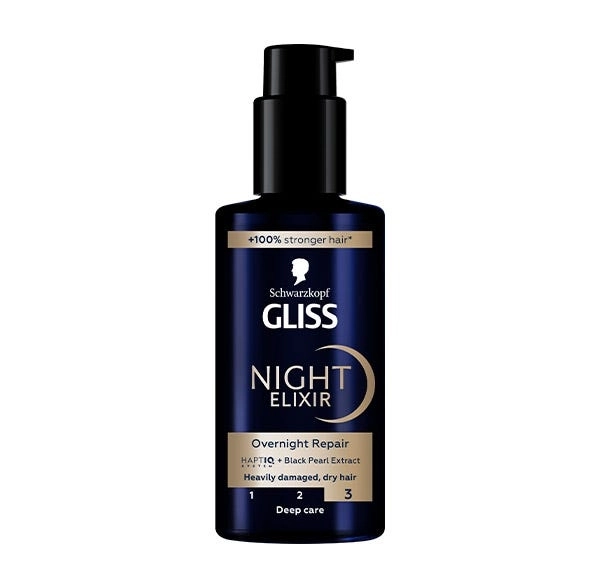 Desarrollado para cabellos muy dañados y secos, Night Elixir Reparación contiene Extracto de Perla Negra + HaptIQ System, que crea microenlaces y fortalece la estructura del cabello, proporcionando hasta 25 veces más resistencia* y brillo (*vs. cabellos sin tratar).