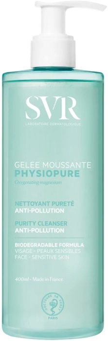 El Gel Moussant Physiopure de SVR es un gel purificante y refrescante, adecuado para todo tipo de pieles sensibles. Su textura ligera se transforma en espuma, proporcionando una experiencia de limpieza sensorial sin causar resequedad. Este producto está formulado con una selección rigurosa de ingredientes, siendo hipoalergénico y diseñado para las necesidades de las pieles delicadas. Contiene magnesio oxigenante, que contribuye a energizar y reoxigenar las células, además de desintoxicar la piel. Incluye un complejo hidratante exclusivo que ofrece confort, suavidad y flexibilidad, evitando la sensación de tirantez.