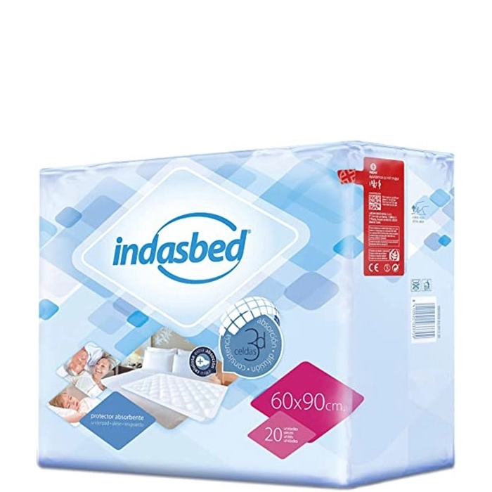 Protector absorbente de un solo uso para pacientes incontinentes encamados o en silla de ruedas.